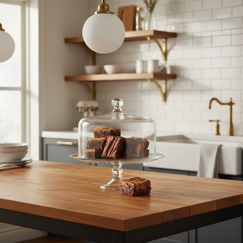 • Cake Stand with Dome: Show off your confectionary masterpieces with our two piece round cake stand with dome set; the elegant cake glass dome adds profile to the table with its curved look